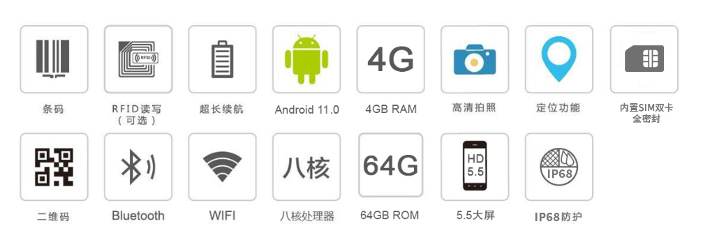• 支持所有条码码制识别。最新条码引擎,技术领先;条码识别快 ,灵敏度高;大范围角度更灵活的条码扫描;
